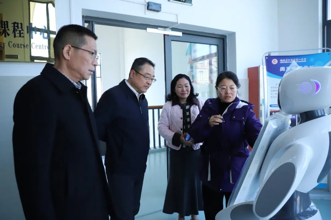 座谈会后,艾永晴一行实地参观了我校阳光心理课程中心,详细了解AI情绪识别系统、个体辅导室、团体活动室等设施设备运行情况,并就心理课程与社科普及如何深度融合、协同育人等问题与学校教师进行了现场交流。