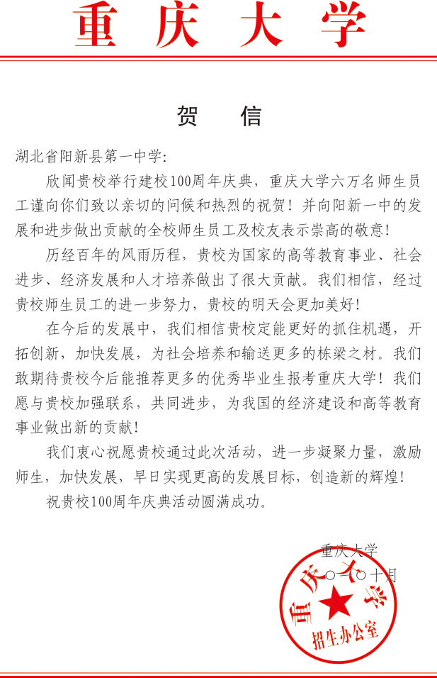 重庆大学贺信