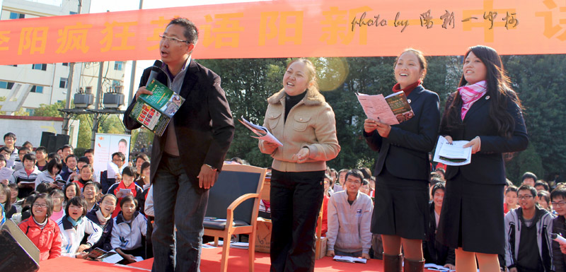 让学校副校长、副书记、语文教师明道树尝试第一次教学生读英语 |
