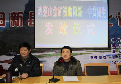 元月20日上午,鸡笼山金矿费量副总经理一行不畏严寒,冒着鹅毛大雪专程来我校捐资助学,为十名品学兼优的贫困学子每人发放了400元助学金。