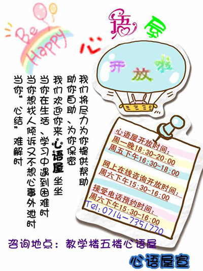 4、为了最大限度的发挥心语屋——金凤凰心理咨询室的作用,我们现将固定时间做出如下更改: