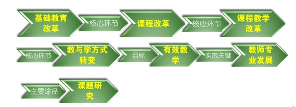 为什么我们要求大家都参与课题研究呢?高中课程改革有一个非常清晰的改革逻辑思路,要让研究成为教学的常态,树立教学即研究问题,即课题的意识。课程校本化又有利于解决我校实际问题,形成我校科研特色。