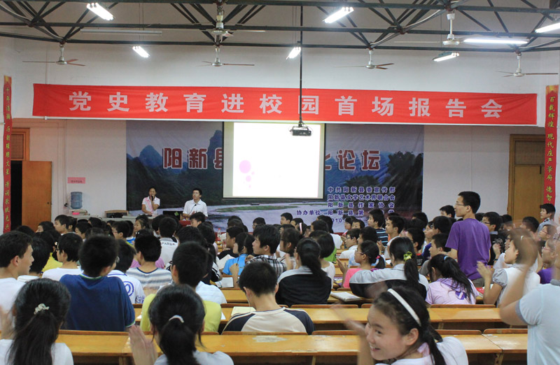 首场报告会现场:阳新一中团委书记致开场词