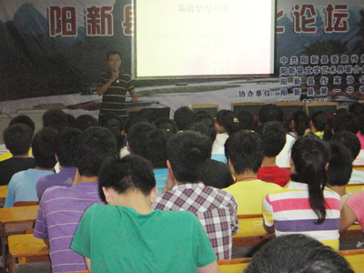 7月12日晚7:00清华大学2010级出土文献研究与保护中心陈鹏宇博士生在阶梯教室给我校高二(7、8、9、10)四个重点班的学生介绍“英语学习方法”。