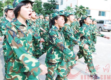 广州军区七五三一零部队编号018教官告诉记者,他所带的这支名为“阳刚之方队”,主要训练武术表演,每天早上7:30至11:20,下午3:00至5:30是新生们军训的时间,晚上还有一个小时的军歌练习。这些学生很听话、能吃苦,即使每天辛苦的训练,同学们还是很有活力,一直保持着一切行动听指挥的态度,从不抱怨,军训进行到现在虽然只有短短几天,他们的进步却非常快。他说,军训可以培养学生的吃苦意识,培养他们的团队意识,增强他们抵抗挫折的能力,相信这些同学以后都会成长为国家的栋梁。