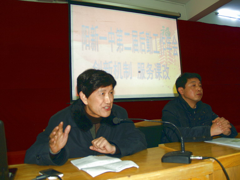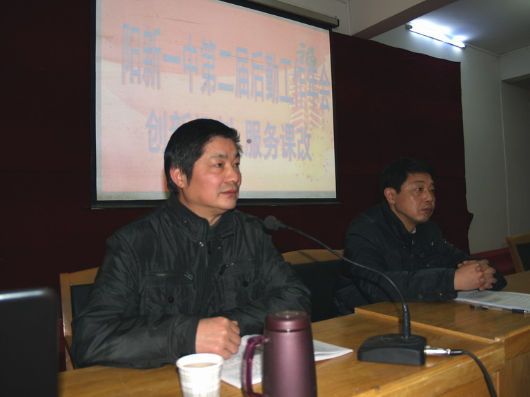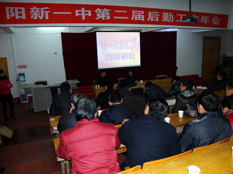 阳新一中2011年第二届后勤年会于2012年元月6日晚上7:00整在我校综合楼一楼阶梯教室举行。参会人员有校全体行政领导、全体班主任、教会代表及总务职员。