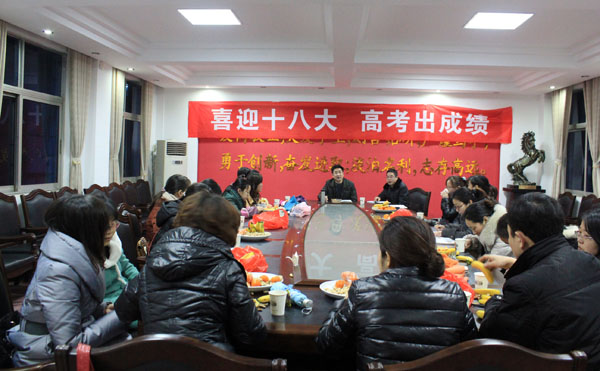 春回大地,春寒料峭 春雨绵绵。37日晚上,为庆祝第102个“三八国际妇女节”的到来,让高三女教师过一个健康、和谐、快乐、温馨的节日,高三年级党支部在综合楼会议室组织召开了以“凝聚力量促和谐,争先创优出成绩”为主题的女教师座谈会。