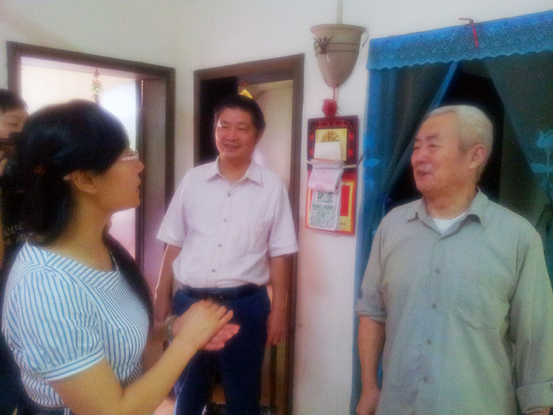 付玉书副县长(左一)在一中校长赵立中(中间)的陪同下到我校老教师家中慰问