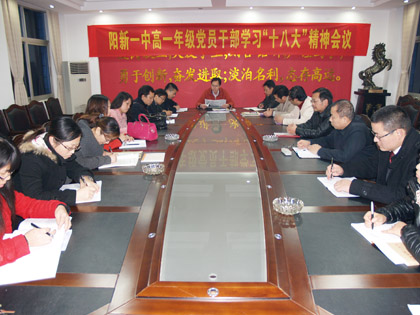 11198时整,高一年级组领导和高一党支部成员在综合楼三楼会议室召开学习党的“十八大”精神预备会议。会上,阳新一中梁师稳副校长作了重要部署。梁校长强调,学习活动要“集中学习,全面展开”。主要分三步走:第一步,高一年级全体党员干部重点学习;第二步,高一年级全体教师结合教学工作领会;第三步,高一年级学生采取班会活动等形式学习。随后,高一年级李朝忠主任根据梁校长的部署作了具体的工作安排。