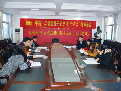 11191130,阳新一中高一年级组采取多种形式学习党的“十八大”精神,并结合教学工作实际,努力领会和实践“十八大”精神。