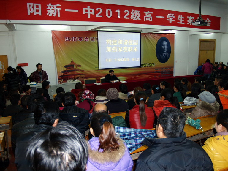 12月15日 上午,阳新一中2012级高一年级在综合楼阶梯教室召开高一年级家长会。会议由高一年级党支部书记徐美姝主持。梁师稳副校长发表了专题讲话。