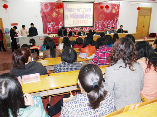 阳春三月,阳光灿烂,鲜花盛开。阳新一中校园春意盎然,洋溢着节日的喜 庆。20133月初,阳新一中工会为庆祝第103个国际三八妇女节,充分展示女性半边天的风采,举办了“阳新一中庆三八女教工乒乓球比赛”和评选“岗位建功巾帼模范”的活动。201338日上午9:00,在综合楼学术报告厅举行了“阳新一中庆祝三八妇女节暨表彰“岗位建功巾帼模范”大会。一百二十余名女教工满面春风,满怀自豪感,会聚一堂隆重庆祝三八节。全体校级领导、工会委员、工会组长参加了大会。会议气氛祥和而温馨。