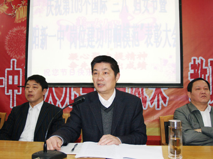 赵校长代表学校党总支、校委会对全校女教职员工表示节日的祝贺和深切的慰问;对受到表彰的各位模范和参加女教工乒乓球比赛的巾帼健儿表示热烈的祝贺。在回顾我校在过去的2012年所取得的业绩中,充分肯定了全校女教职员工所发挥的“半边天”的作用。他说,在高考备考、心理辅导、班主任工作等方面,女教师个个‘巾帼不让须眉’,业绩显赫;实验室、图书室、阅览室、财务室、保管室、收发室、工会活动室、学生寝室等等,处处是女教工们在工作,事事是女教工们在把关。最后语重心长地提出几点期望:第一、坚持岗位建功,在平凡的岗位做出不平凡的业绩。第二、坚持以德为先,用我们的言传身教促进学生健康成长。第三、坚持勤奋好学,追求上进,用我们的知识和智慧去提升自己的工作能力、工作水平。我们必须不停地学习,不断地取得新知识,不断提升我们的工作能力,我们才能适应这个飞速发展的时代,才能适应教育好不断变化的教育对象。最后引用“加法”组词,幽默风趣地的再次表达了美好的节日祝福。