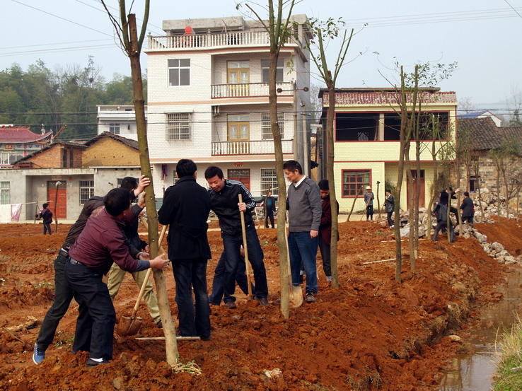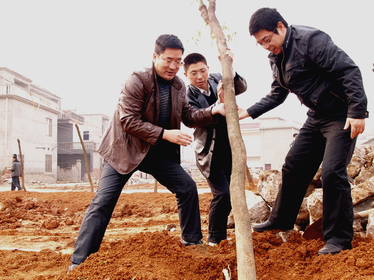 所栽植的40棵香樟树是我校赠送给进中村,算是为该村的环保建设出一份绵薄之力。进中村的村民很是感谢,临行时拿烟表谢意,但都被赵校长婉言谢绝。