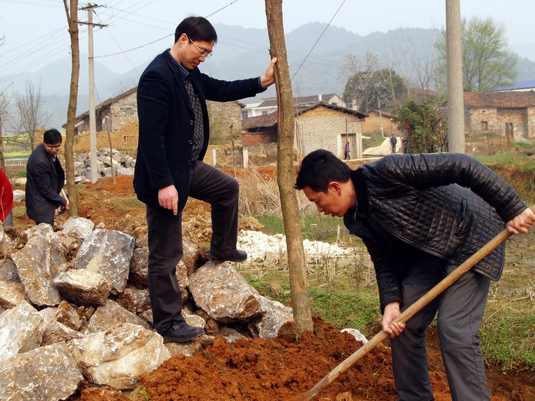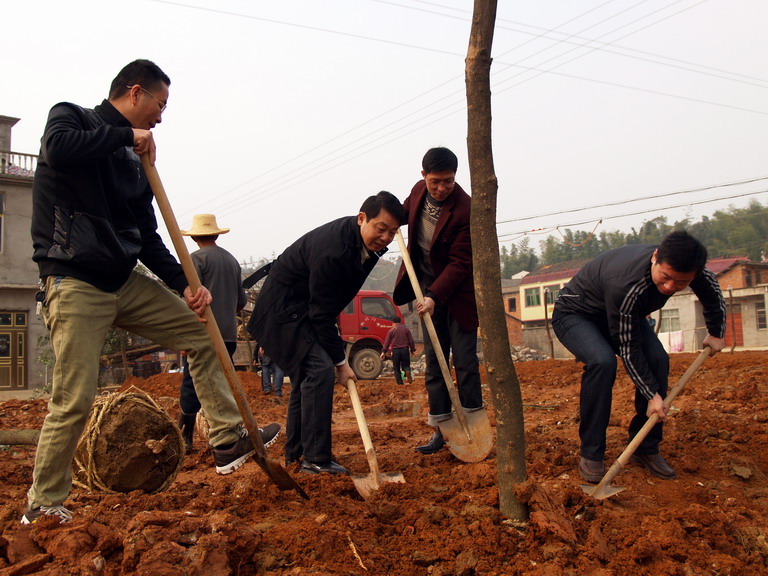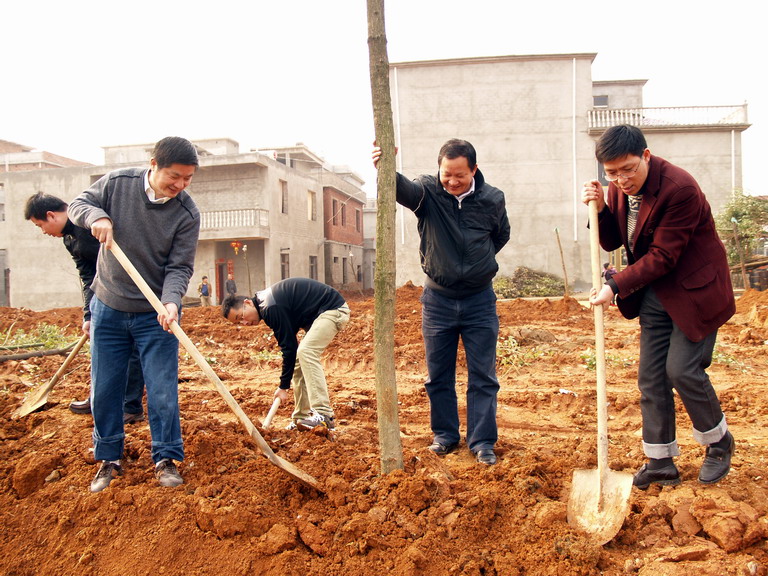 3月12日是我国植树节。早上8点,春风习习,春光明媚。我校党总支书记、校长赵立中带领全体校总支领导班子和十几名中层干部驱车颠簸一个多小时来到浮屠镇进中村植树点。