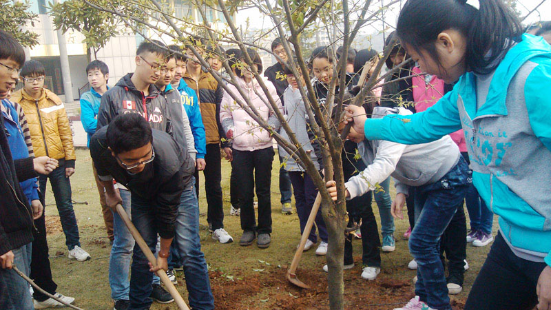 3月12日植树节,高一(20)班学生在凌云广场种上了一棵梅树,并将此作为飞翼2012班班树激励自己学习梅花精神,刻苦学习。