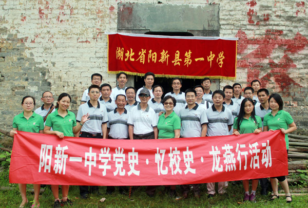 阳新一中各党支部成员在东坑中学旧址旁合影留念,而这,或许,正是另一种方式的铭记。