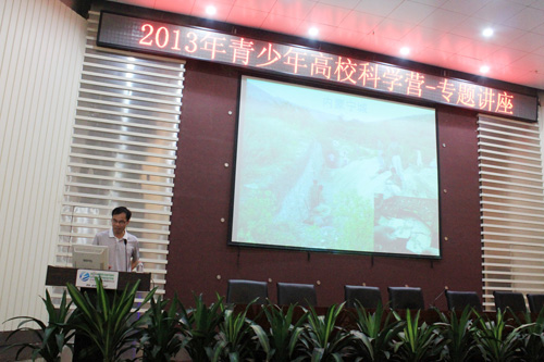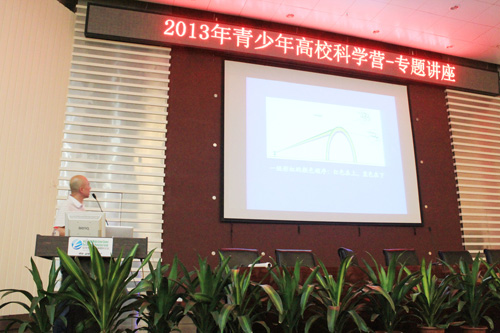 最后,在全体人员热情的掌声中,中国地质大学(武汉)校党委副书记傅安洲教授宣布2013 年青少年高校科学营中国地质 大学(武汉)分营正式开营,并作了《这是我的地大,也是你的地大》校史主题报告,讲述了地大人以“艰苦朴素,求真务实”精神创造的辉煌历史。