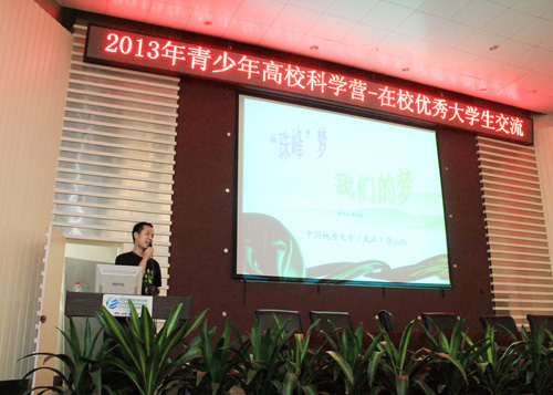 为了使营员们对地大大学生的生活、学习和科研活动有更加深入的了解,7 月14 号下午,地大在逸夫博物馆报告厅安排了“与在校优秀大学生交流”活动。本次活动分别由来自珠宝学院、资源学院、体育课部的三位优秀大学生主讲,并与营员们进行了互动交流。