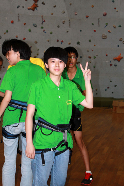 在每个同学的期盼中,最激动人心排下 一队、二队来到亚洲最大的室内攀岩馆——中国地质大学(武汉)攀岩馆。老师先对攀岩活动进行了介绍,让同学们对攀岩有了更多的了解。接着地大攀岩队优秀队员进行表演攀岩——岩壁上的攀岩。专业队员们的精彩表演,让营员们深为折服,现场不时发出惊叫声和掌声。几个胆大的营员,也跃跃欲试,亲身体验了攀岩运动给自己带来的快乐。最激动人心的活动——体验攀每个队选出两男两女进行比赛。看着憧憬已久的攀岩赛道,同学们摩拳擦掌,跃跃欲试。同学们充满了激情,虽然从来没有进行过攀岩,但是同学们的激力量, 最好的一位同学爬到了9 块板。在自己的队友进行攀爬时每个队的队友也大声呐喊,为自己的队友加油。呐喊声不断,比赛热情依旧。年轻的他们用自己无畏的精神诠释着自己的毅力。同学们攀爬时不放弃,随时思考着该如何更好的进行下一步和保护好自己的这一步。虽然还稚嫩,但他们用自己的努力、汗水和毅力告诉我们年轻是没有失败,只有不断地努力,正如地大的校训一般——艰苦朴素,求真务实。相信他们会在以后的路上,不断进取,用汗水告诉他人自己是最棒的。