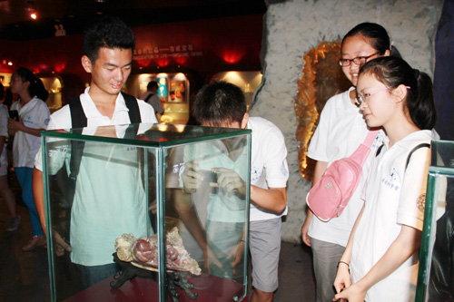 上午九点四十分,博物馆的张凡老师在博物馆大厅首先对博物馆做了大致介绍,并对接下来的参观做了布置。随后营员们分组,分别在讲解员的引领下兴致勃勃地参观了博物馆展厅和校史馆。