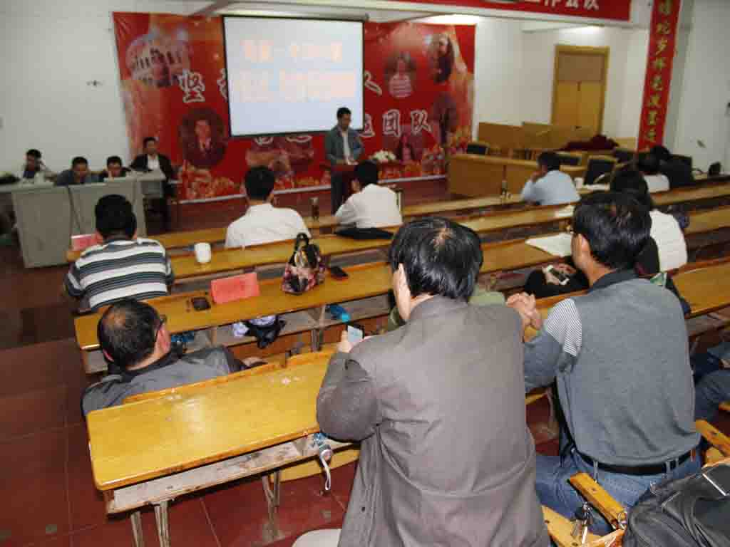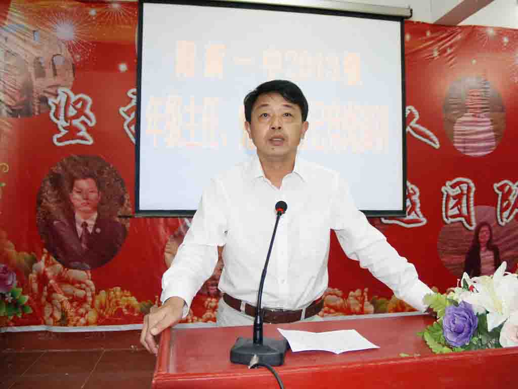 大会由工会主席肖绪曙主持。首先由党总支副书记、副校长明道树讲话。明校长详细介绍了前期的筹备工作,此次民主推举大会的重要性,以及推举办法。推举办法是民主投票制,投票成员由两部分组成,一是校委会成员和两位县政协委员教师,票数权重为40%;二是学校中层干部和高一在编在岗教师,票数权重为60%。明校长讲完话后9为候选人一一发表了精彩演讲。大会最后由党总支书记、校长赵立中讲话。赵校长首先从自己丰富的人生经历娓娓道来,要求入选的年级领导要有爱心、耐心和信心。爱心,要爱自己的年级团队;耐心,年级工作琐碎繁重,要耐心处理各项工作;信心,对自己有信心,对团队有信心。其次赵校长强调入选人员要“正确定位,工作到位”八个字。