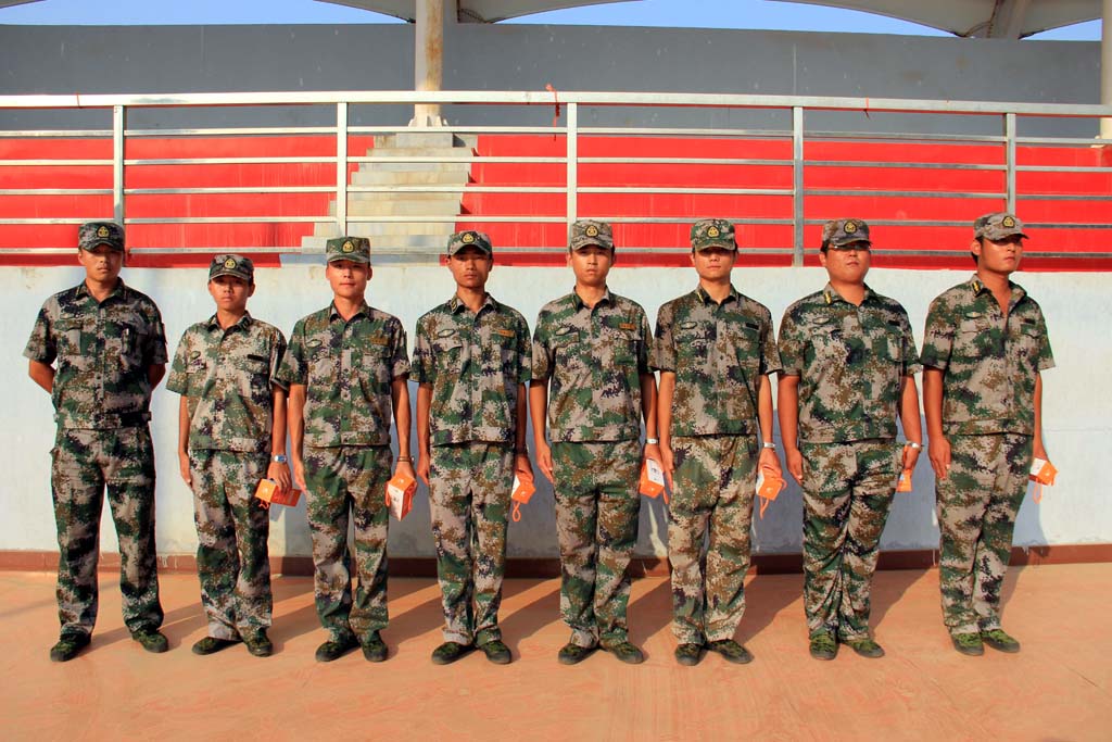 迎着朝阳站军姿