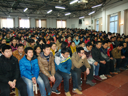 2014年2月11日下午3点,阳新一中高三乙部召开了高三学术励志大会,会议由蔡云秀主任主持。首先由北京大学学子石志文和清华大学学子柯飘飘发言,他们生动讲述了他们高中和大学生活阅历,细心传授着高中阶段的学校经验,用榜样的力量感染在场的每位同学;其次,教师代表李庆芳老师介绍曹汐、石志文同学在一中读书时的感人事迹,传递着师生携手奋进的精神,激励学生树立雄心壮志;班主任代表何兆晗老师叙读了柯飘飘同学三年来的励志成长历程,也谈及到班级建设的创新思路,语重心长,掷地有声。最后年级负责人方长风书记做了总结讲话,用英雄的事迹激励同学们为中华之崛起而努力读书,激情洋溢的话语点燃了同学们的理想之光,扬帆启航直至胜利的彼岸,会议在掌声和欢乐声中圆满结束。
